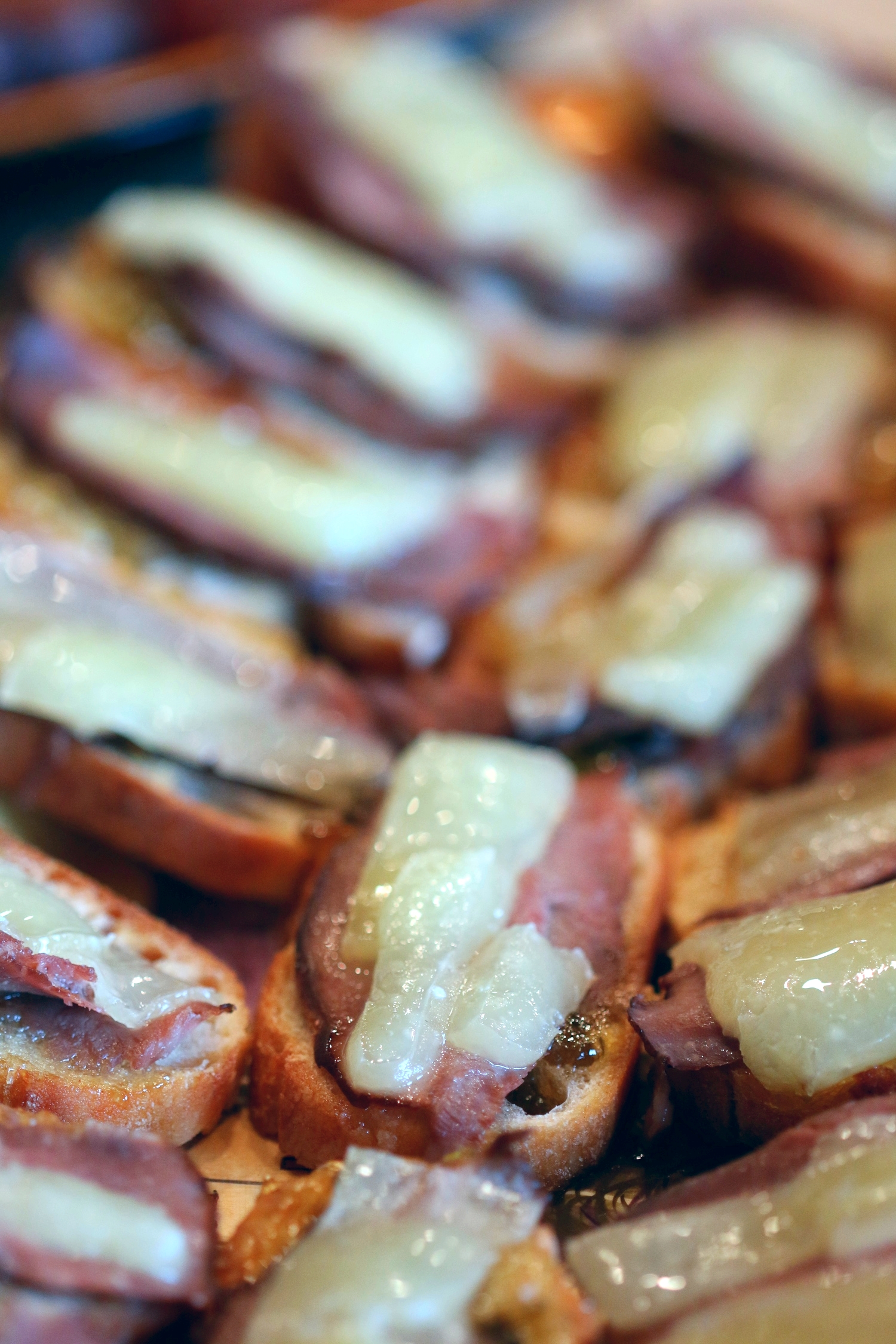 Smoked duck and Manchego crostini