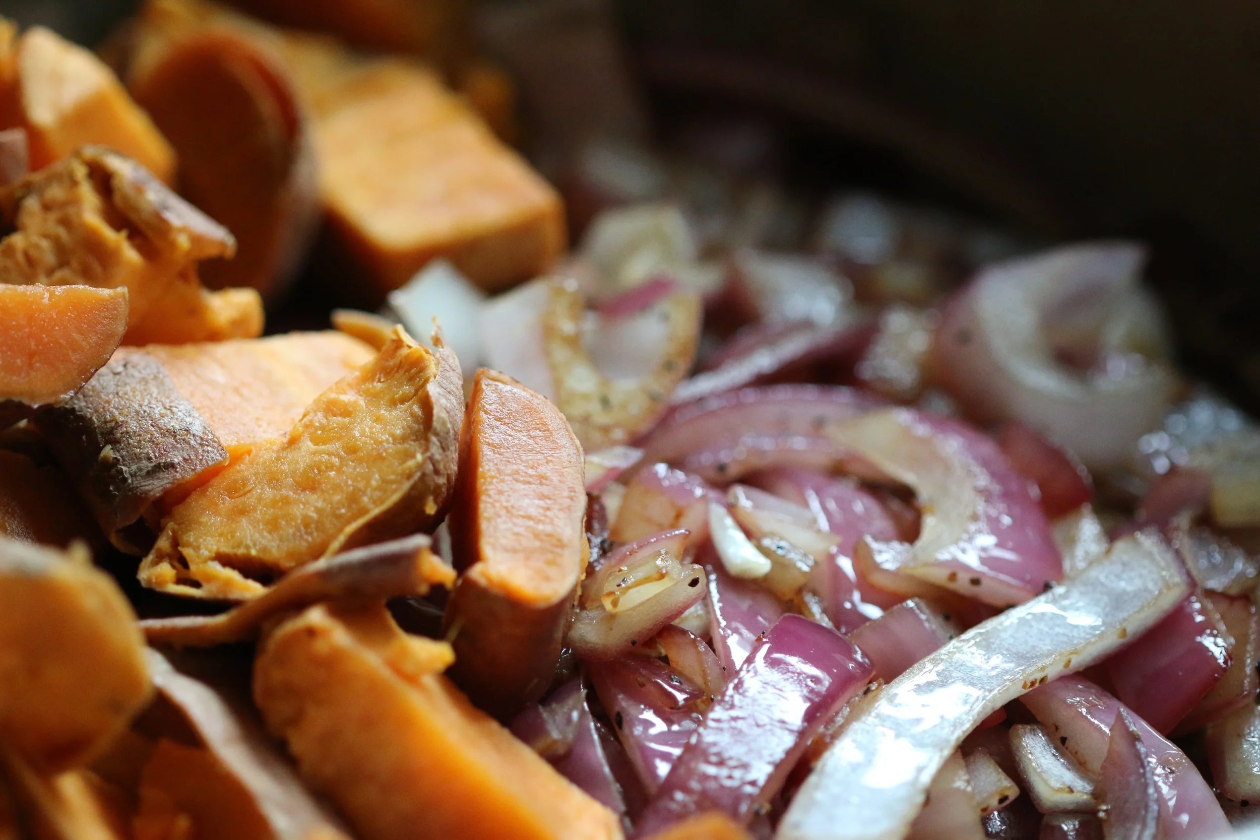 3 large skin-on sweet potatoes, baked, cooled and cut into bite size pieces