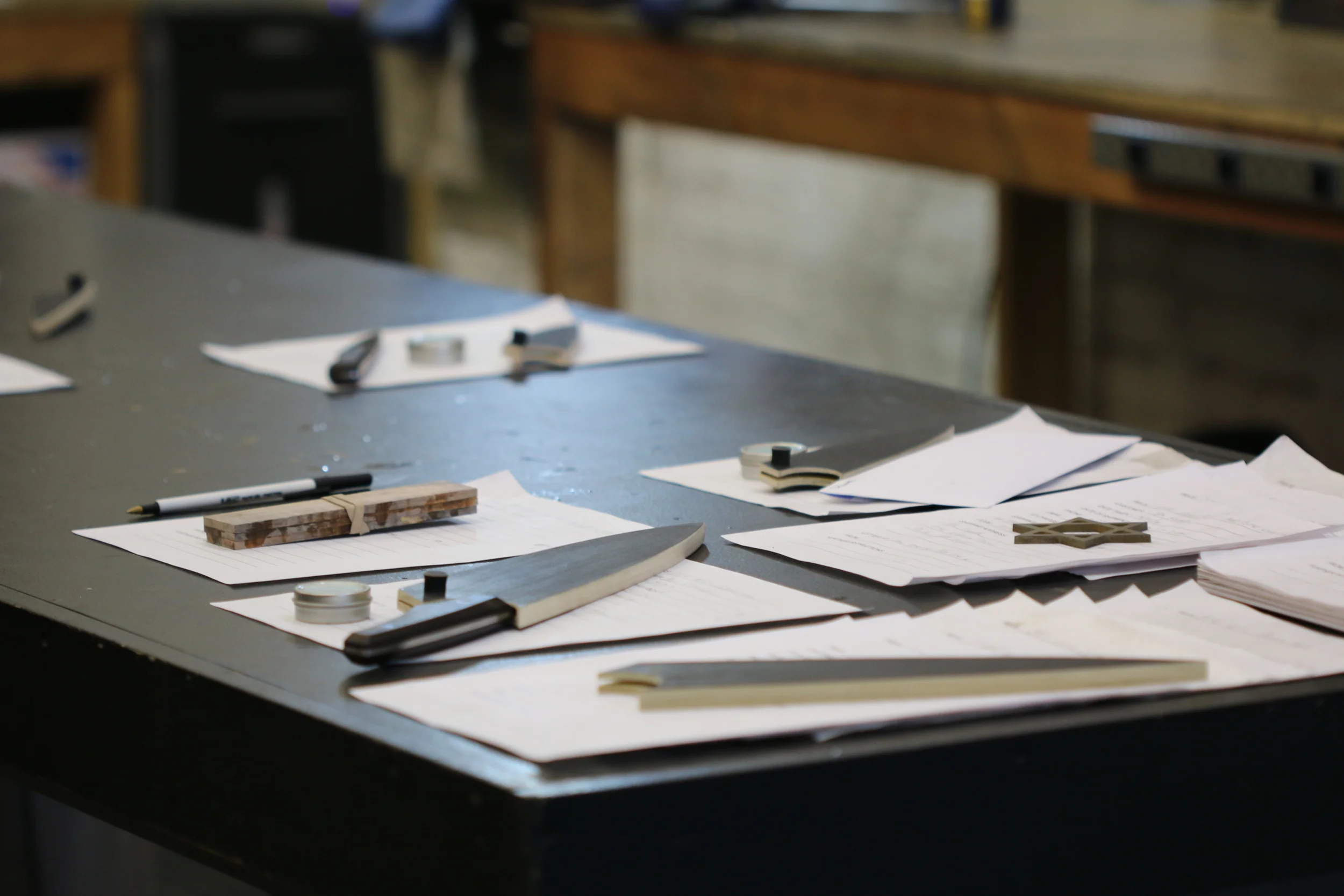 Joel provided samples of his Prospect line and Journeyman line of knives. I chose the Prospect line because the form allows for a rocking motion which I prefer when chopping.