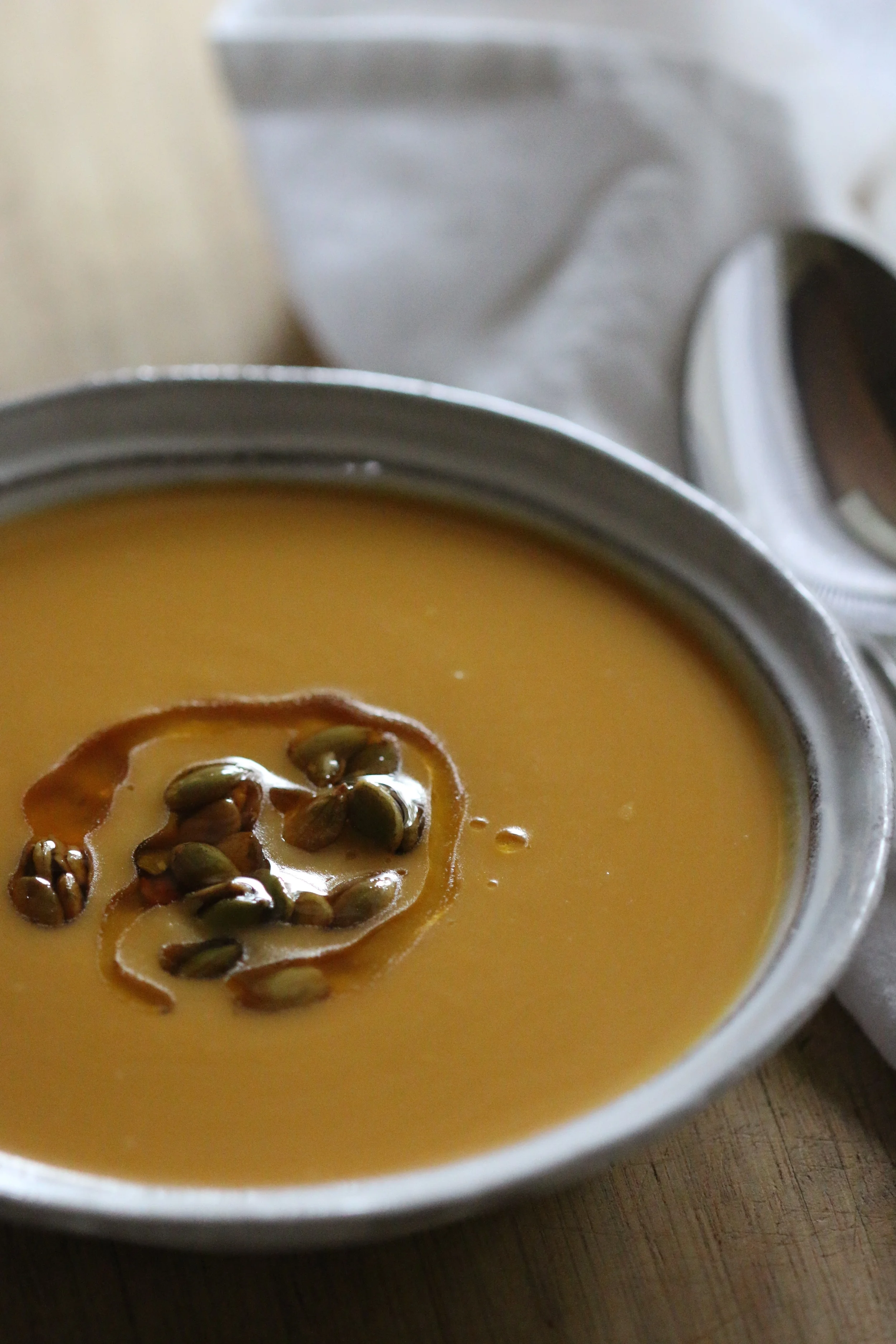When there's a chill in the air (which hasn’t arrived in Louisiana just yet) there's nothing quite like a warming bowl of soup.  Fall is, however, the time to give soup a starring role. This soup is brightened with ginger and lemon zest.   The smooth texture of butternut squash topped with a drizzle of spicy oil and pepitas give the soup its character.   To round out a meal serve with a tossed green salad and crusty bread.
