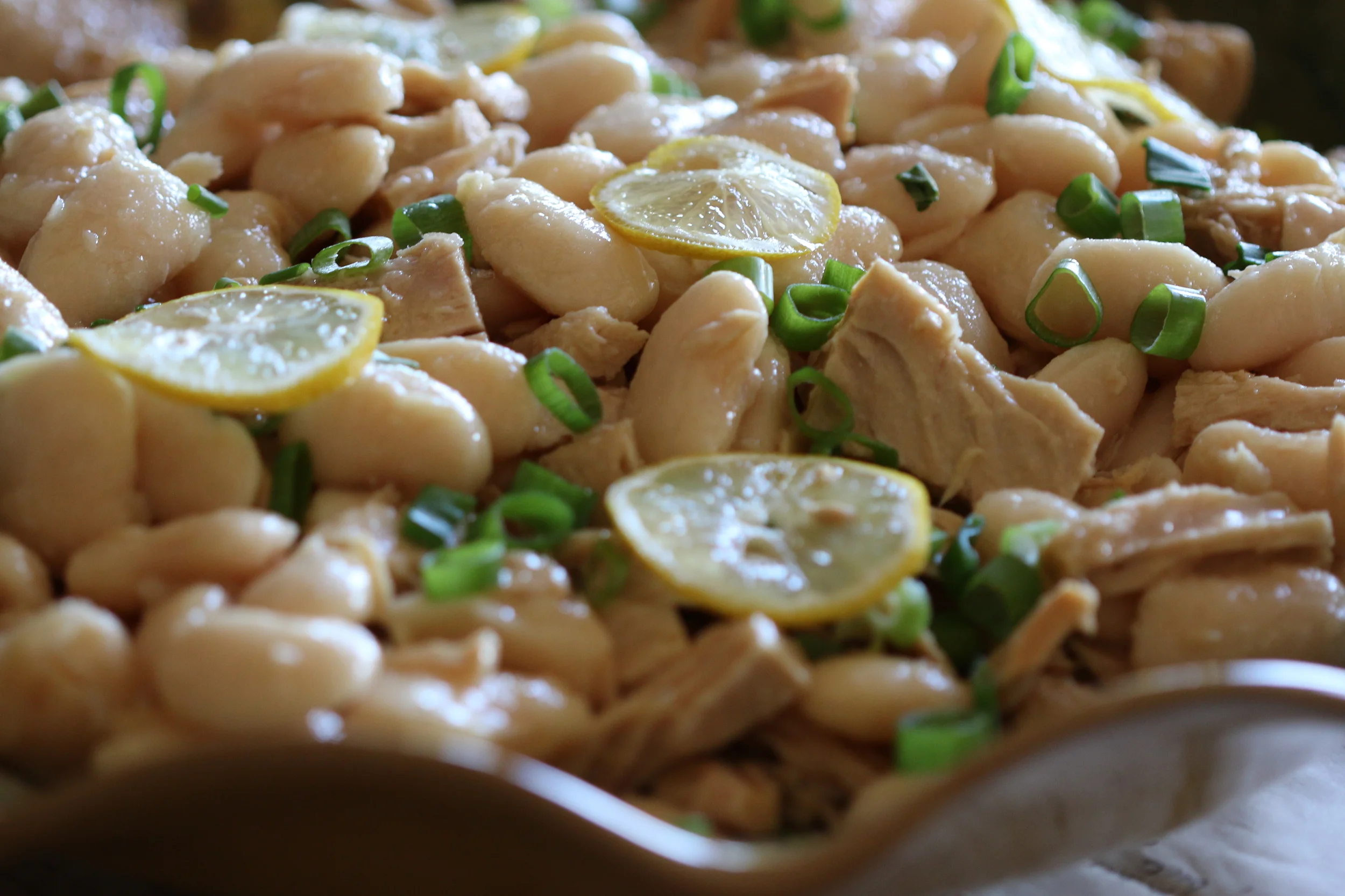 Transform your pantry staples and a handful of fresh ingredients into a quick and delicious meal. You can easily dress up this bean salad with fresh herbs and serve it on a bed of greens, but why complicate things? The simplicity of this salad lets the flavor of 5 ingredients shine through. Simply open a few jars, drizzle olive oil, add green onions and squeeze a few lemons. It's that simple. It's that delicious.