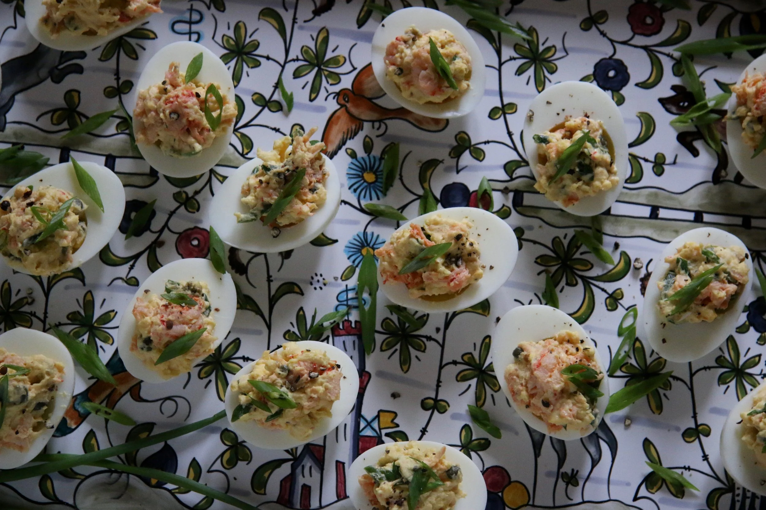 Deviled eggs are a classic appetizer that get an upgrade with your crawfish tail meat. The filling for these eggs is studded with crawfish, capers and green onions for a flavor blend that makes the perfect one bite appetizer.