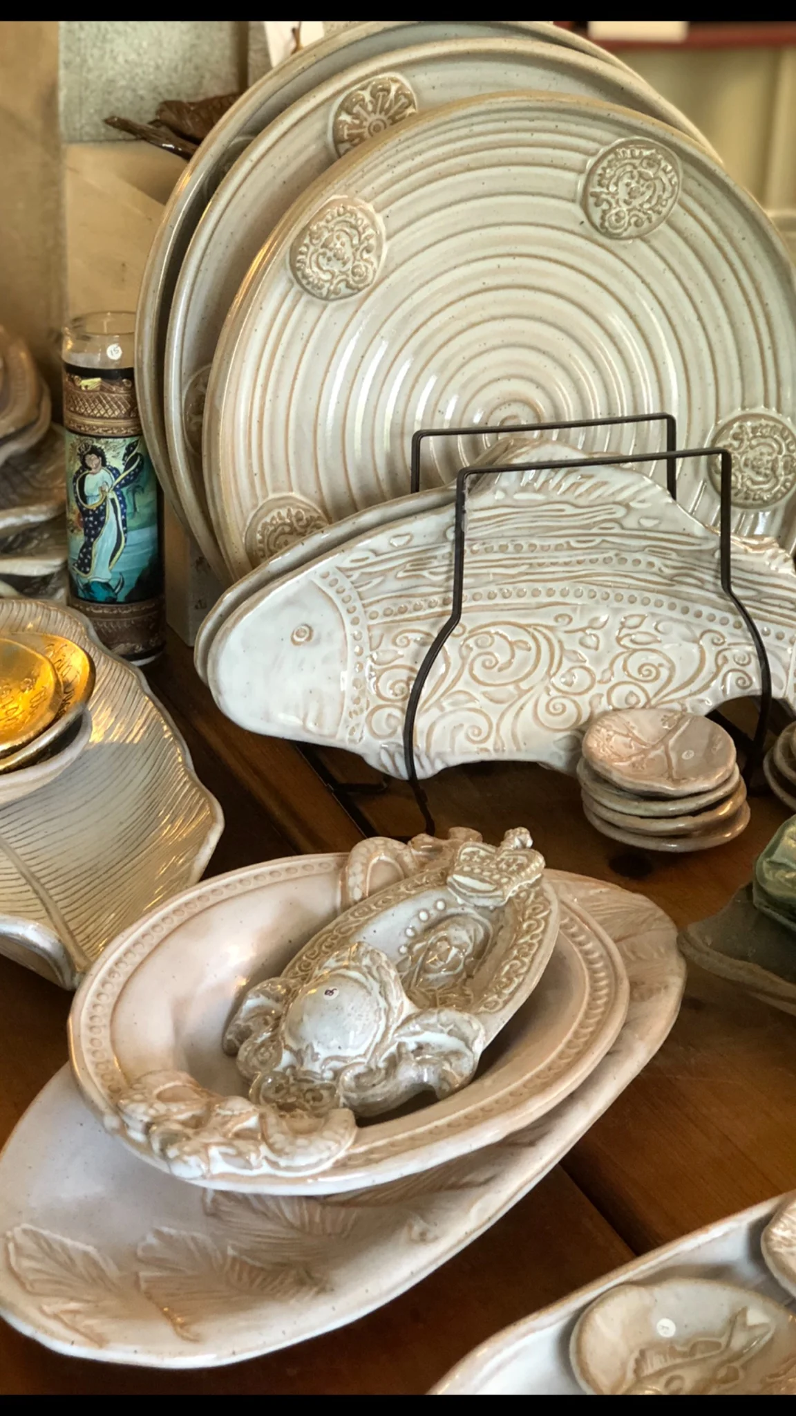 John Hodge and Francie Rich will host their annual Art Boutique in their home Friday, December 1st and 2nd 11am-6pm. John's one-of-a-kind pottery pieces range from delicate flowers to plaques and water fonts.