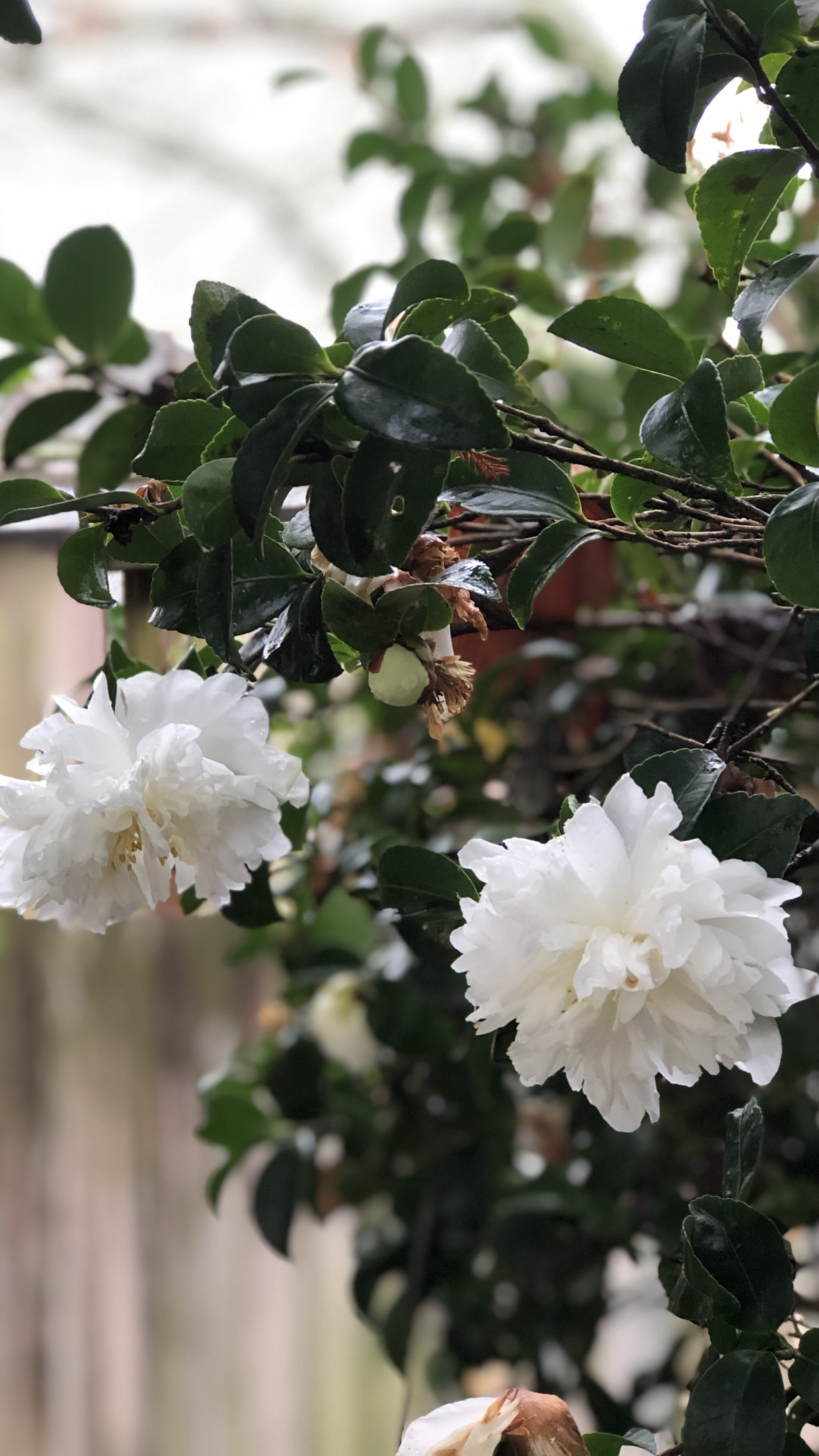 Winter blooms during the holiday season in southeast Louisiana are profuse and filled with color. Clippings make convenient and colorful tablescapes.