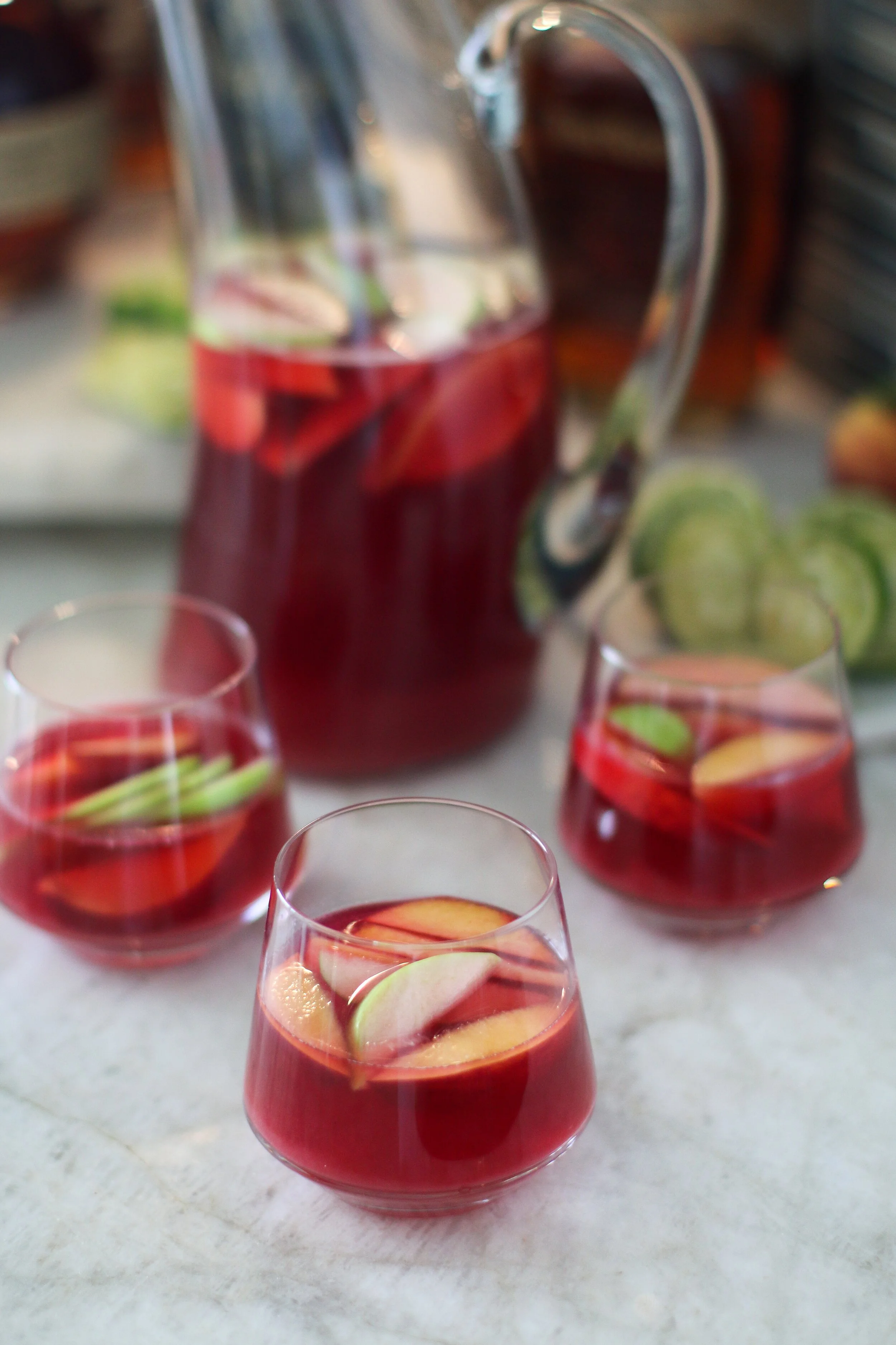 This batch-ahead drink is infused with tart and refreshing hibiscus flowers. Click here for the recipe. If you have My South Texas Kitchen cookbook the recipe is on page 165..