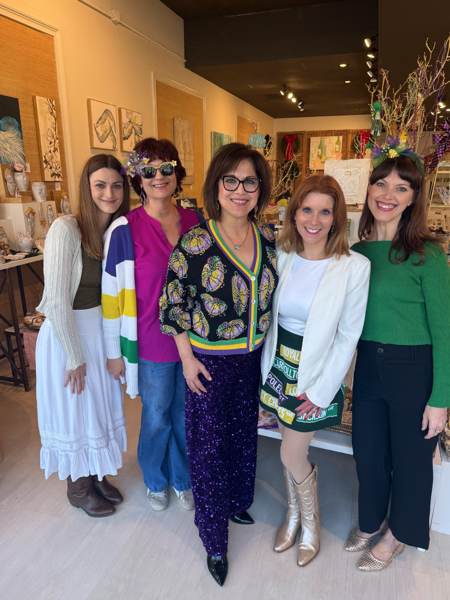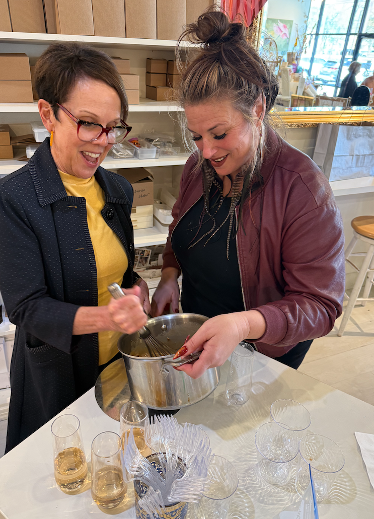 The setting couldn’t have been more charming. The boutique was beautifully decorated for Valentine’s Day and Mardi Gras, filled with thoughtfully curated Southern maker gifts and treasures. Guests even received a special shopping discount, making the day feel like both a cooking class and a little celebration.